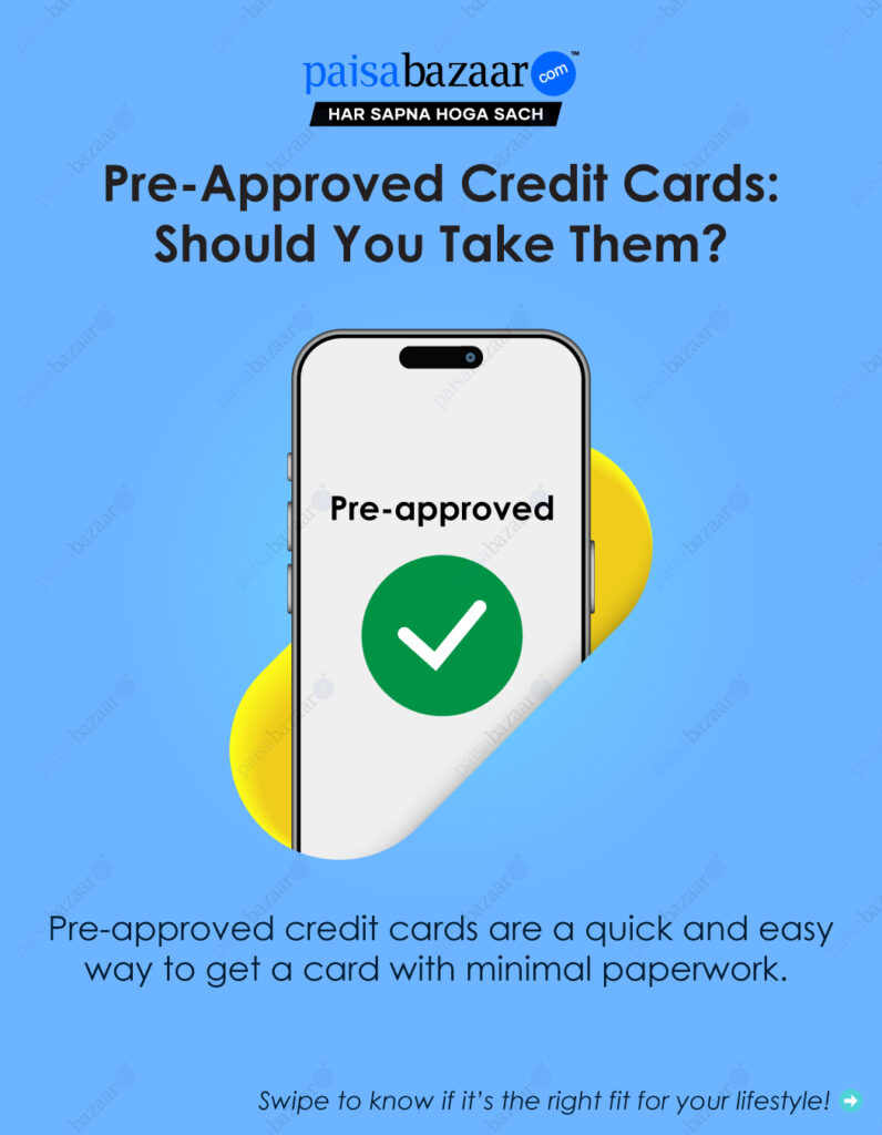 You can apply for a pre-approved credit card either by visiting your card issuer’s website or through platforms like Paisabazaar.