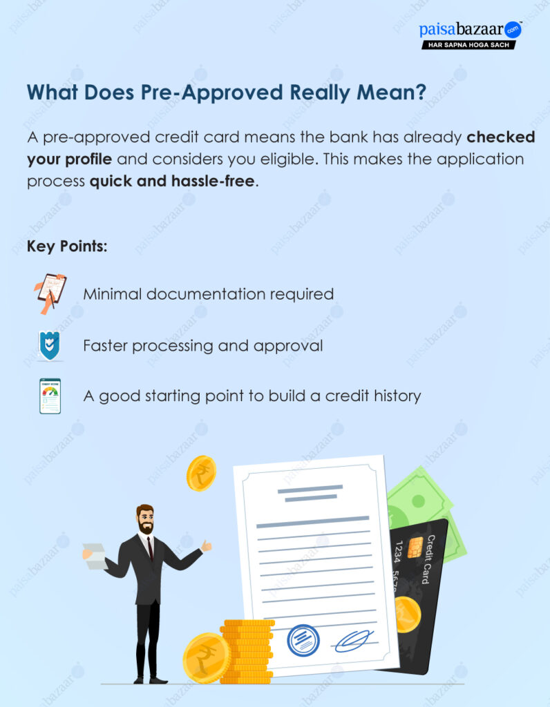 A pre-approved credit card is offered by issuers to consumers with a good credit score. It means the issuer has reviewed your credit profile, primarily your credit score, and if you meet their basic eligibility criteria, they offer you a card. However, do keep in mind that pre-approved does not always mean guaranteed approval. The issuer may still reject your application after a final verification. The final approval depends on the issuer’s internal policies.