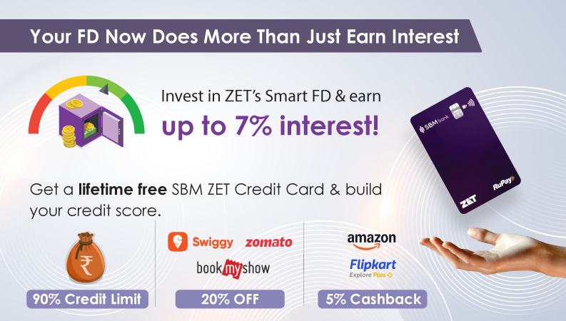 - Interest: 1% above card interest rate as applicable for normal FD schemes for various tenors